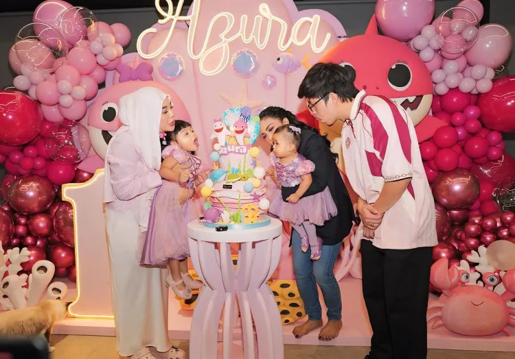 Walau sederhana, namun momen tersebut tampak begitu hangat. Para anggota keluarga bahkan terlihat kompak mengenakan baju dengan warna senada, yakni merah muda. Dekorasinya dan berbagai hiasan balon yang disematkan juga serba warna merah muda. Hal ini juga terlihat pada kue ulang tahun Azura yang didesain bertema baby shark.