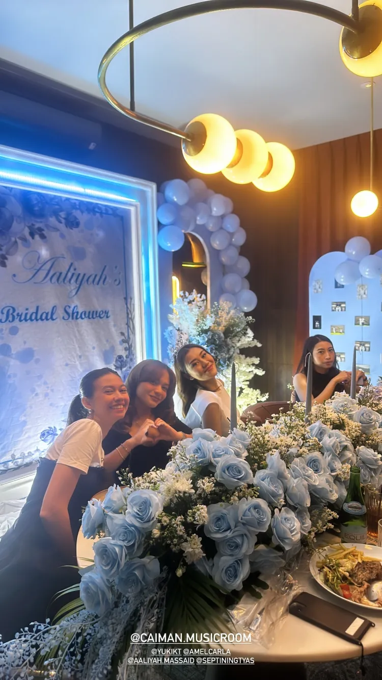 Pernikahan Aaliyah Massaid dan Thariq Halilintar tampaknya akan segera terlaksana. Setelah melaksanakan lamaran pada 23 Juni lalu, Aaliyah diketahui baru saja mendapat kejutan bridal shower dari para sahabatnya. Bridal shower yang digelar pada Jumat (13/7) kemarin tampak dihadiri oleh sahabat Aaliyah Massaid, ada Amel Carla, Azizah Salsha, Yuki Kato, dan Alyssa Daguise.