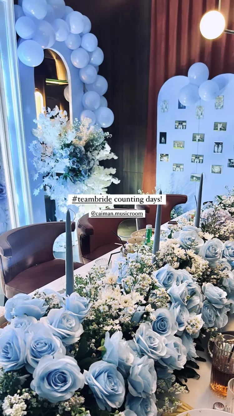 Selain dari pakaian, momen bridal shower tersebut juga semakin lengkap dengan adanya kue tart berwarna biru muda, senada dengan dekorasinya. Ada juga berbagai macam hidangan yang membuat acara tersebut semakin hangat. Siapa sangka, menu hidangan di acara bridal shower Aaliyah Massaid ini mewah dan lengkap.