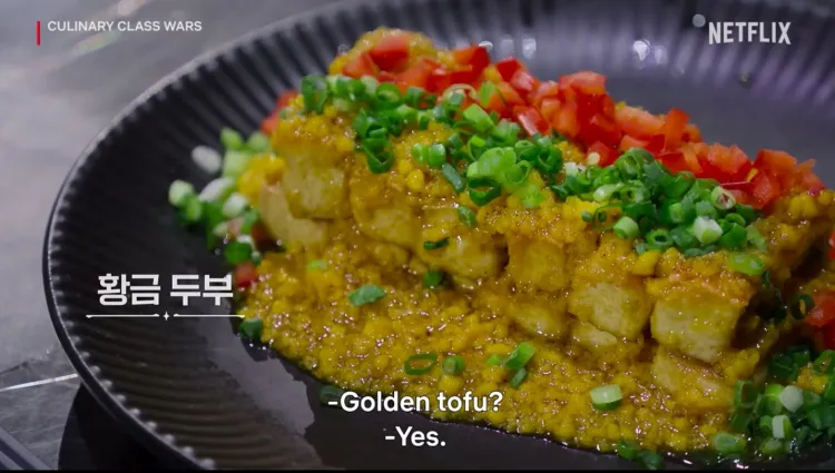 Selanjutnya, Chef Jung Ji-Sun justru mencampur tofu dengan telur. Ia sengaja memberi nama hidangannya sebagai tofu emas.