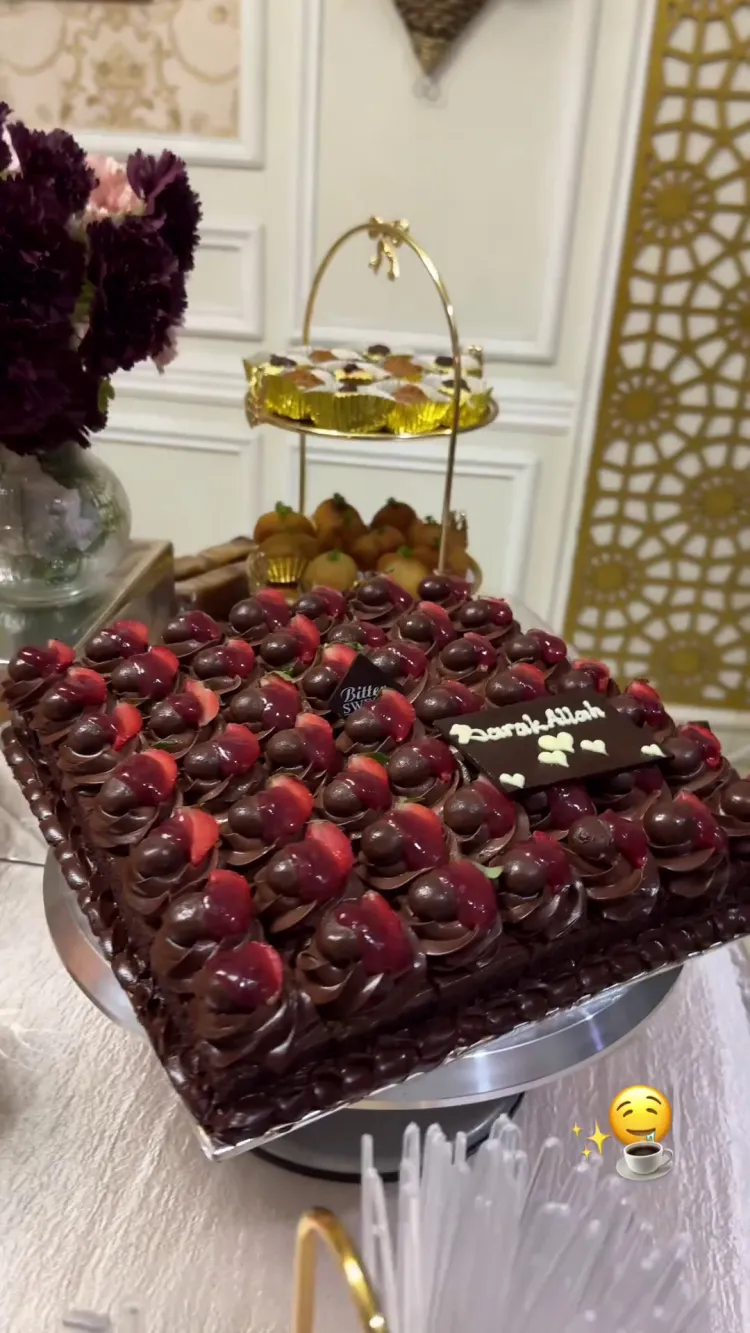 Salah satu hidangan yang menarik perhatian adalah camilan cokelat yang disusun secara rapi bak lapisan kue tart.
