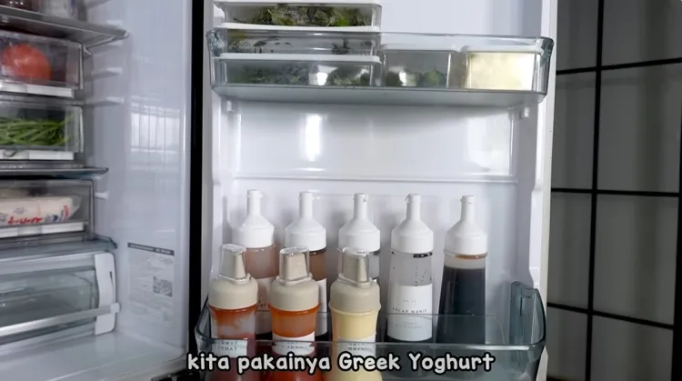 Selain itu, Tasyi Athasyia juga menyimpan berbagai macam saus serta mayonaise di kulkas bagian atas ini.