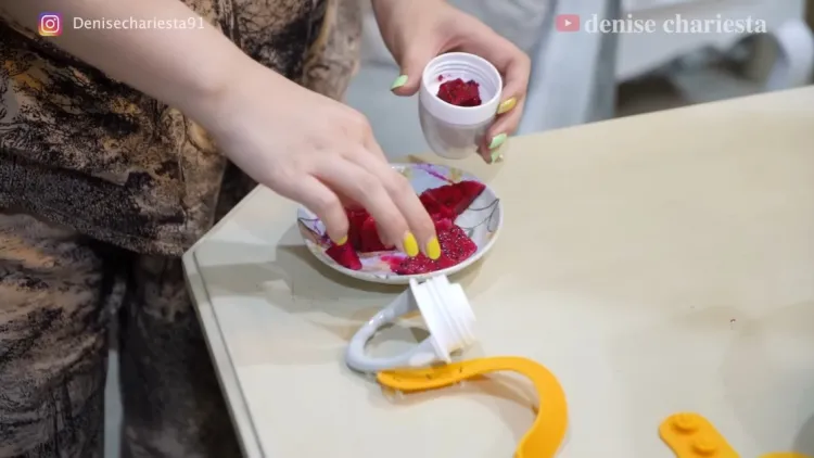 Nggak melulu MPASI berupa makanan komplet, Denise juga senang menyajikan potongan buah naga beku untuk buah hatinya, untuk meredakan rasa gatal pada gusi anak yang tengah tumbuh gigi.