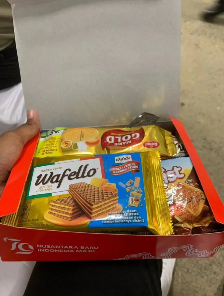 Seorang warganet yang berprofesi sebagai polisi pun sempat memamerkan isi bingkisan yang didapatnya melalui salah satu unggahan media sosial. Terlihat ada snack makanan dan minuman yang sengaja didesain khusus dengan logo dan tulisan spesial HUT RI Ke-79. Isiannya juga komplet sehingga para tamu bisa merasa kenyang setelah mengonsumsinya.