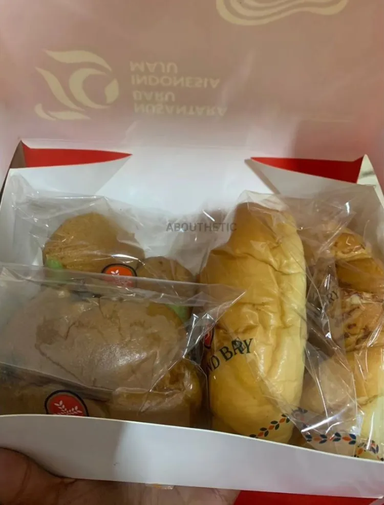 Sedangkan di box makanan lainnya, berisikan 4 buah roti dengan berbagai rasa dan bentuk yang tampak menggugah selera.