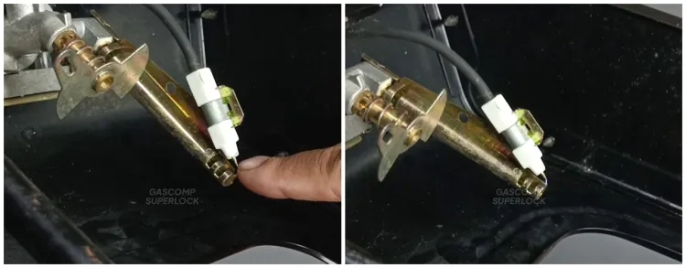 Tahap selanjutnya, pastikan percikan listrik di gas umpan benar-benar keluar. Karena biasanya, kalau sudah terkena hujan deras, percikan listrik ini akan tersumbat. Jika tidak ada percikan, kamu bisa membersihkan ujung besi dari jarum pemantik menggunakan pisau kecil atau kertas ampelas. Selain itu, kabel pemantik juga harus kencang dan kering.