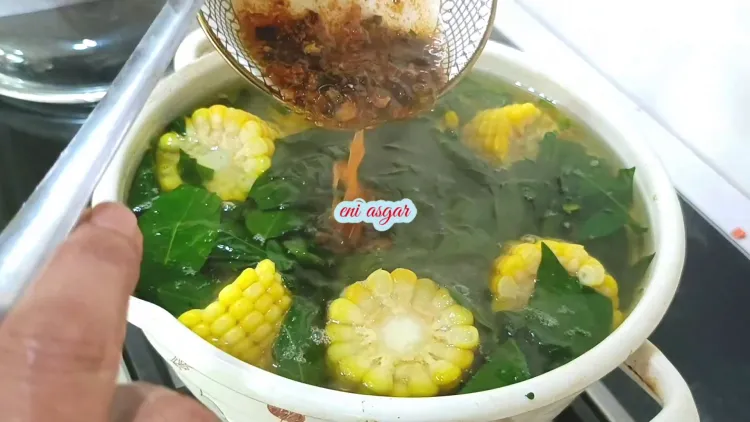 Jika sudah, rebus air di panci sampai mendidih, lalu masukkan jagung yang sudah dipotong-potong. Setelah matang, barulah kemudian masukkan daun katuk yang sudah dicuci bersih. Tekan-tekan dan tambahkan bumbu penyedap, seperti 1 sdt garam dan 1/2 sdt kaldu jamur.