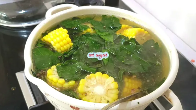 Jika sudah, rebus air di panci sampai mendidih, lalu masukkan jagung yang sudah dipotong-potong. Setelah matang, barulah kemudian masukkan daun katuk yang sudah dicuci bersih. Tekan-tekan dan tambahkan bumbu penyedap, seperti 1 sdt garam dan 1/2 sdt kaldu jamur.