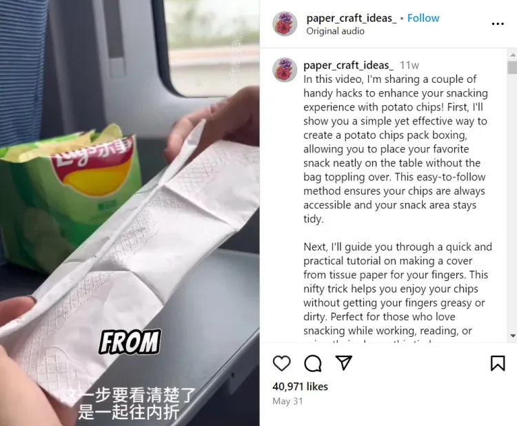 Namun tahu nggak sih? Sebenarnya ada cara lain yang bisa dilakukan untuk menyantap keripik kentang tanpa sandaran atau digenggam tangan. Cara ini pernah diperlihatkan oleh seorang warganet melalui akun Instagram @paper_craft_ideas_.