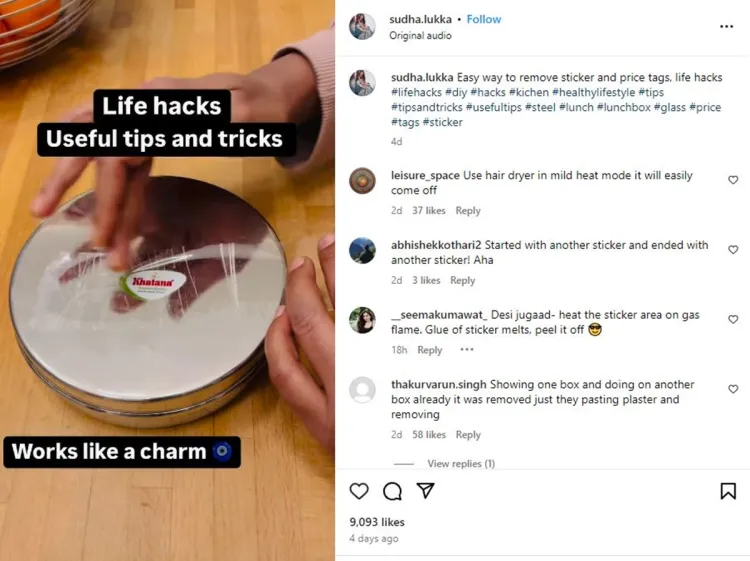 Melalui salah satu video unggahannya, dia menggunakan trik yang lebih sederhana dalam menghilangkan stiker pada wadah makan dengan memanfaatkan lakban. Dilansir BrilioFood dari Instagram @sudha.lukka pada Sabtu (14/9), dalam video tersebut terlihat pengguna Instagram ini menggunakan lakban bening untuk mengangkat stiker di wadah makan dalam sekali tarikan.