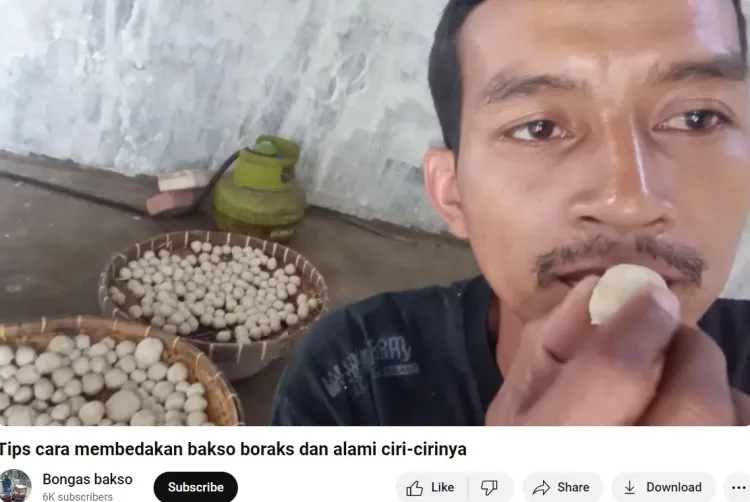 Salah satu cara yang paling sering dilakukan adalah dengan mengecek kekenyalannya. Memang salah satu ciri bakso yang mengandung boraks adalah teksturnya yang sangat kenyal. Namun selain tekstur, ada ciri-ciri lain yang wajib diketahui untuk membedakan bakso boraks dan yang tidak. Nah, perbedaan ini pernah dijelaskan oleh seorang pedagang bakso melalui akun YouTube Bongas bakso.