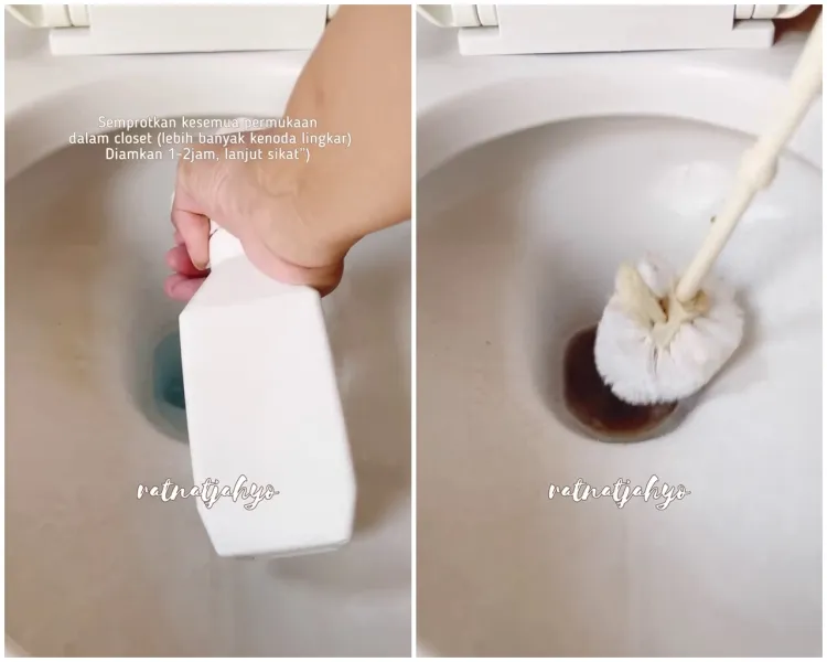 Namun selain dengan cara tersebut, ada metode lain yang bisa diterapkan untuk membersihkan kloset. Metode ini pernah dipraktikkan oleh pengguna Instagram @ratnatjahyo. Melalui salah satu video yang diunggah, dia mengaku hanya menggunakan dua bahan dapur.