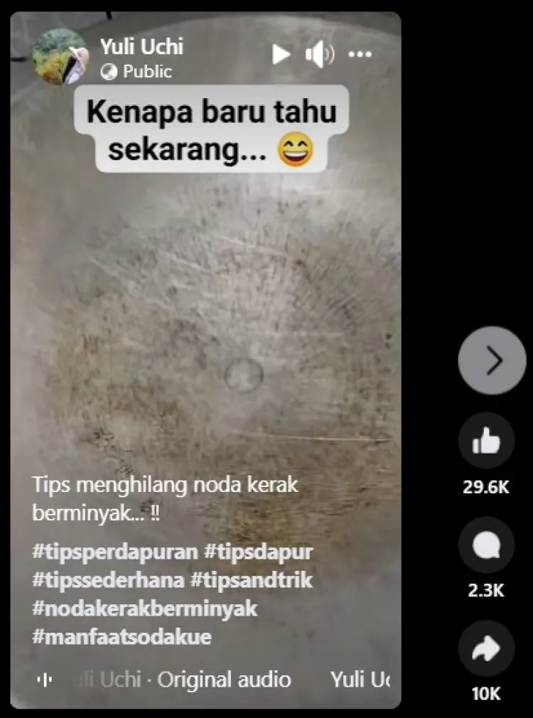 Nah, mulai sekarang kamu nggak perlu khawatir lagi karena ada cara simpel untuk membersihkan dasar wajan dari noda kerak gosong dan lemak. Cara ini sempat dibagikan oleh pengguna akun Facebook Yuli Uchi. Ia menjelaskan, untuk mempraktikkan cara ini, kamu cuma butuh tiga bahan dapur sederhana.