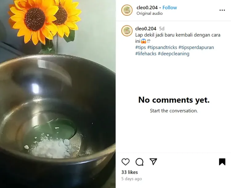 Jika bingung, kamu bisa meniru trik mencuci serbet yang dibagikan oleh pengguna Instagram @cleo0.204 melalui salah satu video yang diunggah. Dia mengaku hanya menggunakan dua bahan dapur untuk mencuci serbet kumal dan bau.