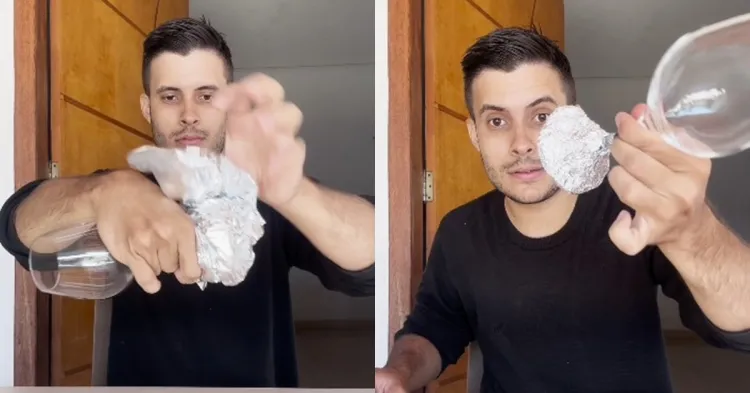 Jadi, alat dapur yang dimaksud yakni gelas kaca. Dilansir BrilioFood pada Minggu (21/7), pengguna akun TikTok @eusourenancarneiro memakai gelas kaca bening yang bertangkai di bawahnya. Kemudian, bagian alas tangkai tersebut ia bungkus dengan kertas aluminium foil.