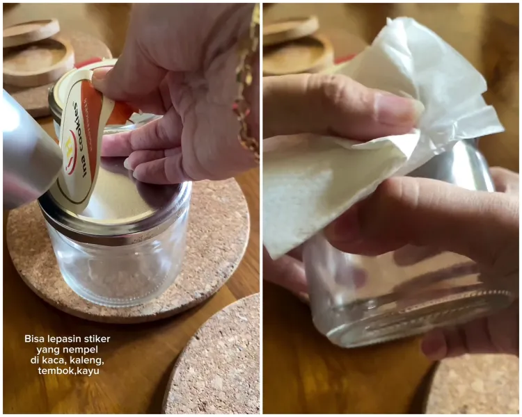 Dalam unggahan tersebut, pengguna TikTok @liriheckaa melepas stiker di dua toples kaca. Tak hanya di bagian bodi toples saja, stiker di tutup toplesnya juga bisa terlepas sempurna. Untuk hasil maksimal, lap toples menggunakan tisu agar tidak ada lem yang tersisa. Hal tersebut akan membuat tampilan toples jadi lebih mulus dan bersih.