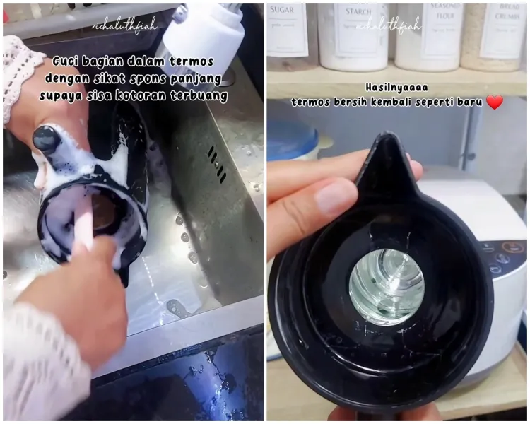 Sayanganya, hingga kini, masih banyak orang yang kebingungan membersihkan termos botol, terlebih jika sudah berkerak. Butuh sikat dan bahan pembersih khusus untuk membuat keraknya benar-benar luntur. Beruntungnya, seorang pengguna Instagram @nichaluthfiah pernah membagikan trik sederhana dalam mencuci termos yang penuh kerak hitam.