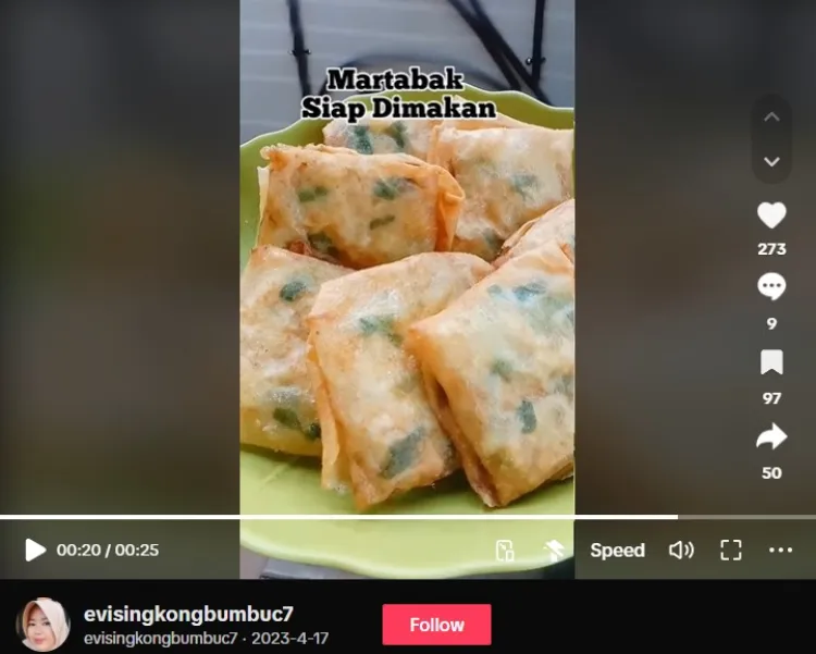 Pengguna akun TikTok @evisingkongbumbuc7 sempat membagikan trik bikin martabak mini, lho. Ia mengatakan, olahan martabak mini ini hasilnya jauh lebih cantik dibanding dagangan penjual gorengan di pasaran. Di sisi lain, hasil martabak mini ala warganet satu ini juga disebut dapat tetap mengembang meskipun sudah dingin usai lama digoreng.