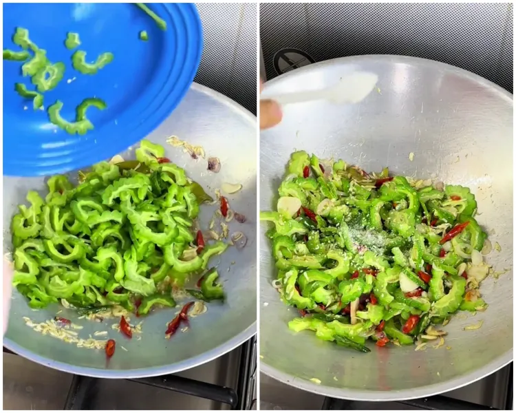 Nah, trik lain untuk menghilangkan rasa pahitnya terletak pada proses penumisan. Setelah menumis bumbu, kamu bisa memasukkan pare yang sudah diiris tadi. Kuncinya, jangan tambahkan air saat menumis pare supaya rasanya nggak pahit dan warnanya berubah. Pasalnya, menambahkan air bisa bikin pare jadi lembek dan nggak hijau lagi karena overcooked (terlalu matang).