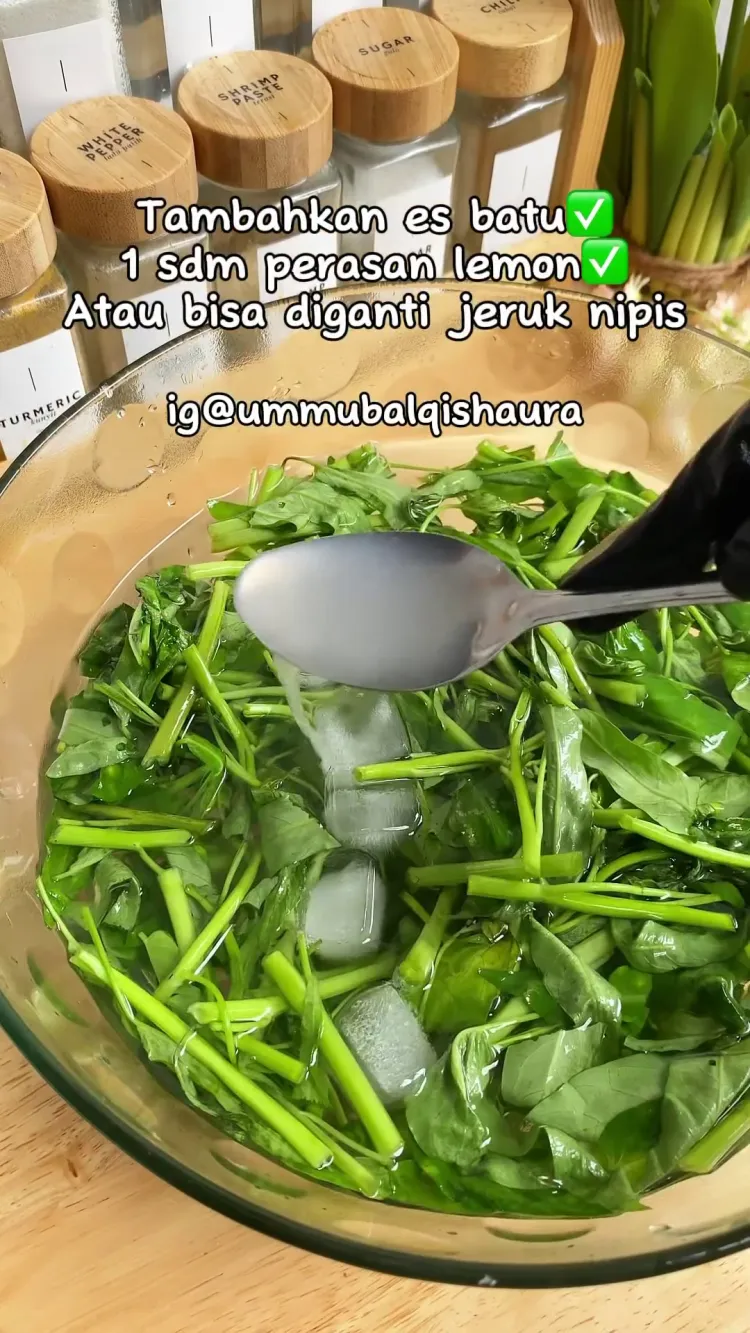 Tapi selain dengan metode merendam air es, ada trik lain yang bisa kamu praktikkan, lho. Trik ini dibagikan oleh pengguna Instagram @ummubalqishaura, cenderung lebih praktis dan cepat karena sayur kangkung yang layu bisa segar lagi dalam waktu 10-15 menit. Bisa menghemat waktu memasak, nih.