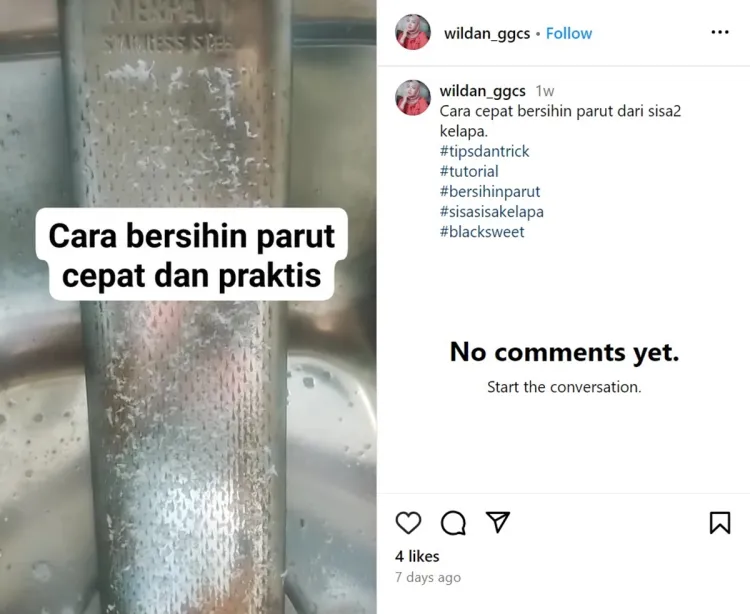 Memang butuh trik khusus untuk menghilangkan sisa kelapa di parutan agar lebih aman dan praktis. Beruntungnya, seorang pengguna Instagram @wildan_ggcs pernah membagikan trik khusus saat hendak membersihkan parutan kelapa. Melalui salah satu video yang diunggah, dia mengaku mengandalkan satu alat sederhana, yakni sikat gigi bekas.
