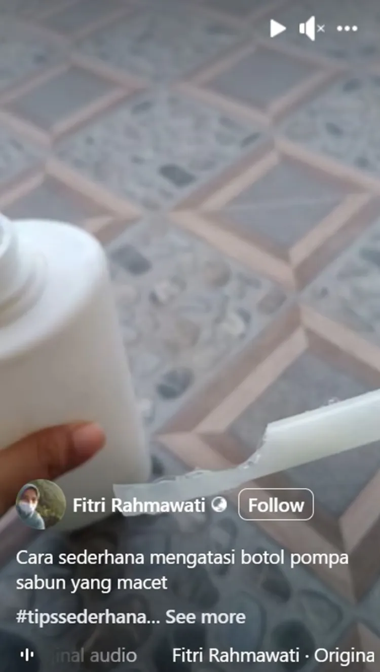 Untuk mengatasi hal tersebut, sebuah trik mudah dari pengguna Facebook Fitri Rahmawati ini bisa ditiru. Melalui salah satu video yang diunggah, warganet tersebut mengaku hanya menggunakan satu sampah dapur untuk mengatasi pompa botol sabun macet. Nah, sampah dapur ini digunakan sebagai penghubung untuk menyalurkan sabun dari botol ke pompa.