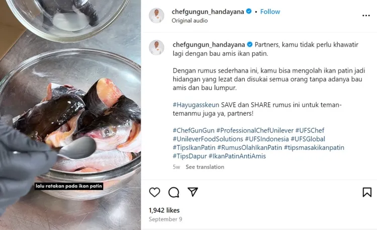 Banyak metode yang bisa digunakan untuk mengolah ikan patin. Salah satunya adalah trik dari pengguna akun Instagram @chefgungun_handayana. Melalui salah satu video yang diunggah, chef sekaligus konten kreator ini mengaku hanya menggunakan dua bahan dapur untuk menghilangkan bau amis dan aroma lumpur pada ikan pati. Dilansir BrilioFood dari Instagram @chefgungun_handayana pada Kamis (17/10), bahan dapur yang dimaksud adalah air jeruk nipis dan garam.