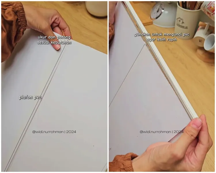 Cara bikinnya, ukuran dan potong PVC plafon sesuai kebutuhan. Kemudian sambungkan setiap bagian PVC dan lem bila perlu supaya semakin kuat merekat. Jika sudah, ambil cable duct tadi dan tempelkan di bagian atas dan bawah PVC untuk mengunci PVC agar lebih rapi.