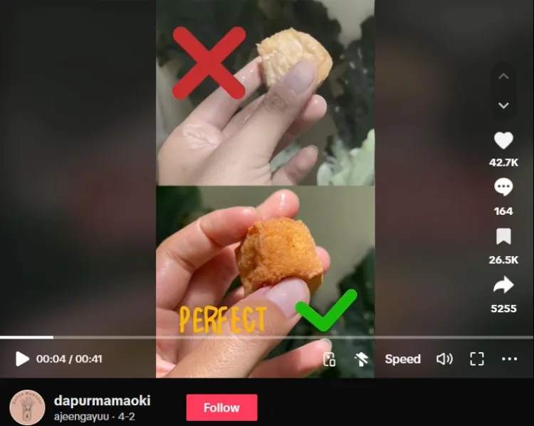 Pengguna akun TikTok @dapurmamaoki mengatakan, ia sempat gagal saat mencoba menggoreng tahu susu. Alih-alih hasilnya tetap gurih dan tidak pecah, tahu susu goreng justru pecah. Isinya pun keluar, sedangkan permukaannya juga jadi kurang cantik. Akhirnya, setelah tahu triknya, olahan tahu susu buatannya tak gagal lagi.