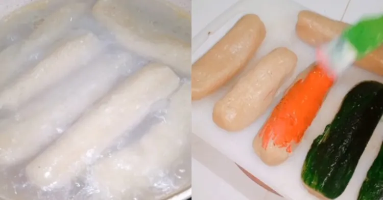 Lalu, angkat dan tiriskan adonan. Setelah ditiriskan, permukaan adonan bisa diberi pewarna makanan sesuai selera supaya penampilannya lebih menarik. Selanjutnya, simpan adonan kerupuk di dalam kulkas.