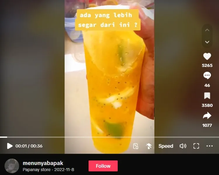 Nah, pemilik akun TikTok @menunyabapak punya rahasia bikin es kuwut agar tetap manis dan segar meskipun tanpa timun, nih. Usut punya usut, warganet satu ini merupakan pedagang aneka minuman dan menjual es kuwut sebagai salah satu menu dagangan andalannya.