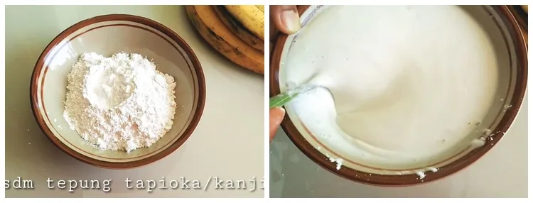 Dilansir BrilioFood pada Jumat (20/9), dia mengaku menggunakan tepung beras sebagai bahan dasarnya. Lalu ada juga tepung tapioka dan telur yang membantu meningkatkan kerenyahan adonan pelapis pisang ini. Sedangkan untuk menghasilkan bentuk yang keriting, dia menggunakan dua jenis adonan pencelup, yakni adonan yang kental dan encer atau cair.