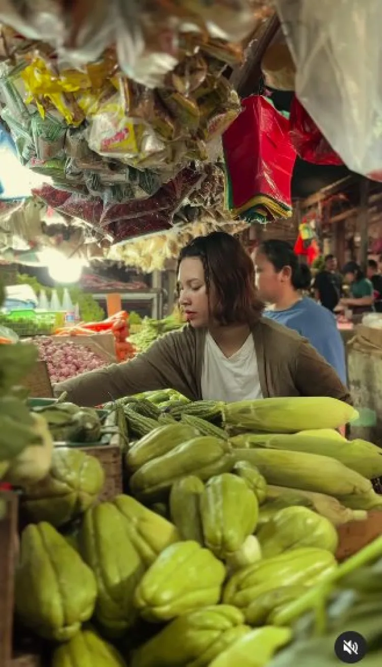 Santai jalan di pasar meski tanah becek, 7 bahan makanan ini dibeli Indah Permatasari
