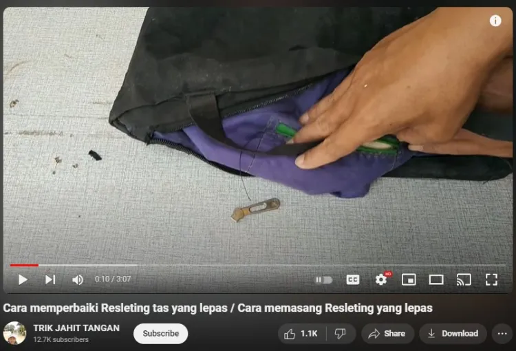 Dilansir BrilioFood dari YouTube TRIK JAHIT TANGAN pada Senin (29/7), trik ini bisa kamu gunakan pada resleting tas, celana, jaket, atau peralatan lainnya, lho. Jadi, kamu nggak perlu buru-buru menggantinya dengan yang baru. Pemilik akun YouTube TRIK JAHIT TANGAN kali ini mencontohkan triknya pada tas totebag.