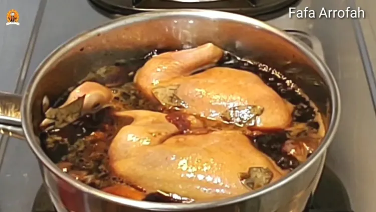 Setelah rebusan bumbu cukup panas, baru masukkan burung dara yang sudah dimarinasi. Masak di dalam panci tertutup sekitar 15 menit. Setelah itu, matikan api kompor.
