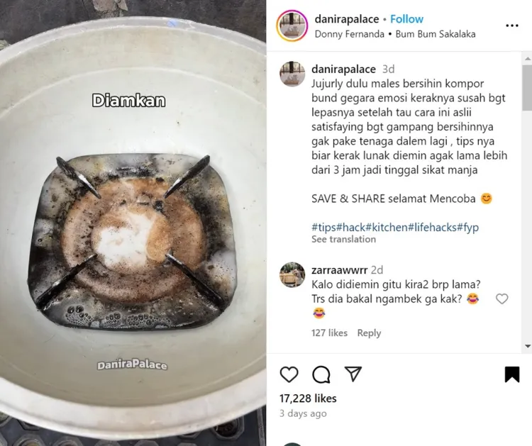 Padahal tahu nggak sih? Sebenarnya kamu nggak selalu harus menggunakan air panas untuk membersihkan tatakan kompor berkerak hitam ini. Seorang pengguna Instagram @danirapalace pernah membuktikan hal tersebut melalui salah satu video yang diunggah. Saat hendak membersihkan tatakan kompor, dia memilih menggunakan bahan-bahan dapur saja.