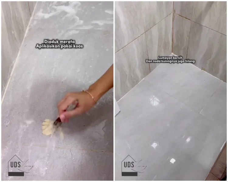"Aku tuh lagi di fase taruma banget sama pembersih lantai yang bisa bikin rusak granit. Jadi aku penasaran pengen buktiin, bener nggak sih kalau pakai bahan ini tuh bisa bersih kinclong. Dan hasilnya, kamar mandi yang tadinya banyak banget noda kuningnya, sekarang bersih seperti baru," ujar Instagram @uds_living.