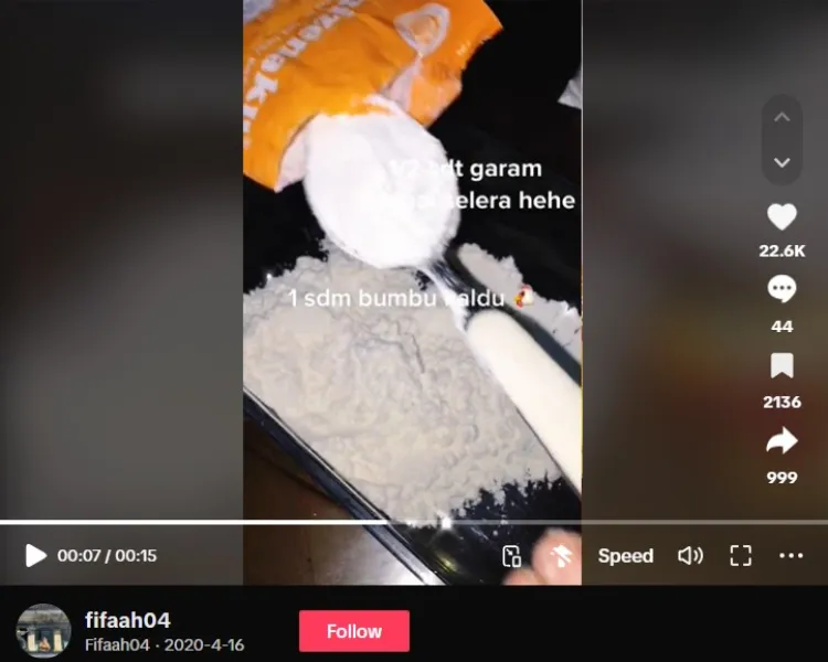 Sebelum masuk ke triknya, racik dulu bahan adonan dan bumbunya. Pemilik akun TikTok @fifaah04 menggunakan tepung terigu, garam, dan kaldu bubuk secukupnya. Kemudian tambahkan juga sedikit tepung maizena dan baking powder. Yup, itulah dua bahan dapur utama untuk bikin tahu goreng semakin renyah.