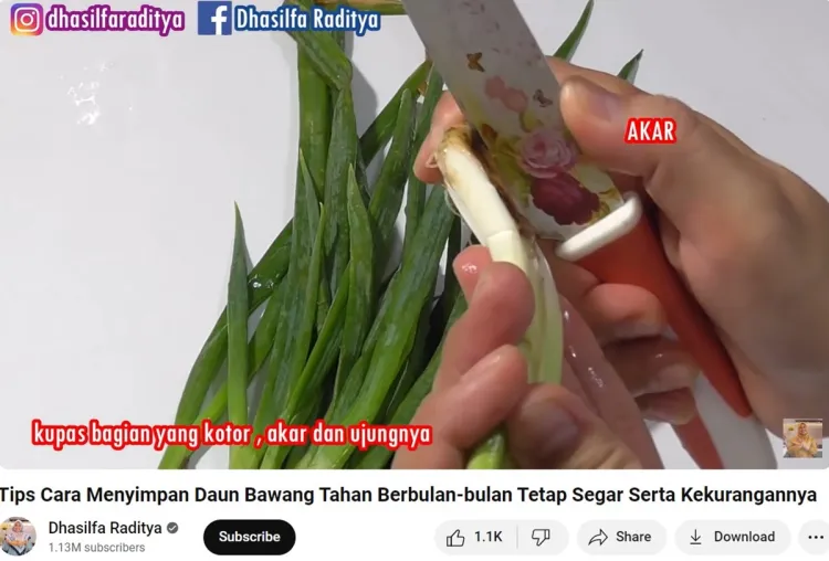 Nah, untuk menghindari hal tersebut, ada sebuah trik yang bisa dilakukan saat menyimpan daun bawang. Trik ini pernah digunakan oleh warganet pemilik akun YouTube Dhasilfa Raditya. Melalui salah satu video yang diunggah, dia mengaku bisa menyimpan daun bawang agar tetap hijau selama 1,5 bulan lamanya.
