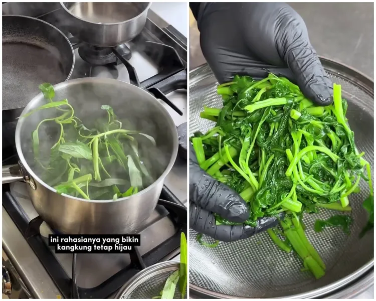 Di sisi lain, merebus kangkung dan tauge dalam waktu lama akan membuat teksturnya jadi lembek. Selain itu, warnanya juga berubah gelap. Sebagai gantinya, kamu bisa meniru trik yang dibagikan oleh pengguna Instagram @chefgungun_handayana. Melalui salah satu video yang diunggah, chef sekaligus content creator ini mengaku hanya menggunakan trik khusus untuk merebus kangkung dan memasak tauge untuk plecing.
