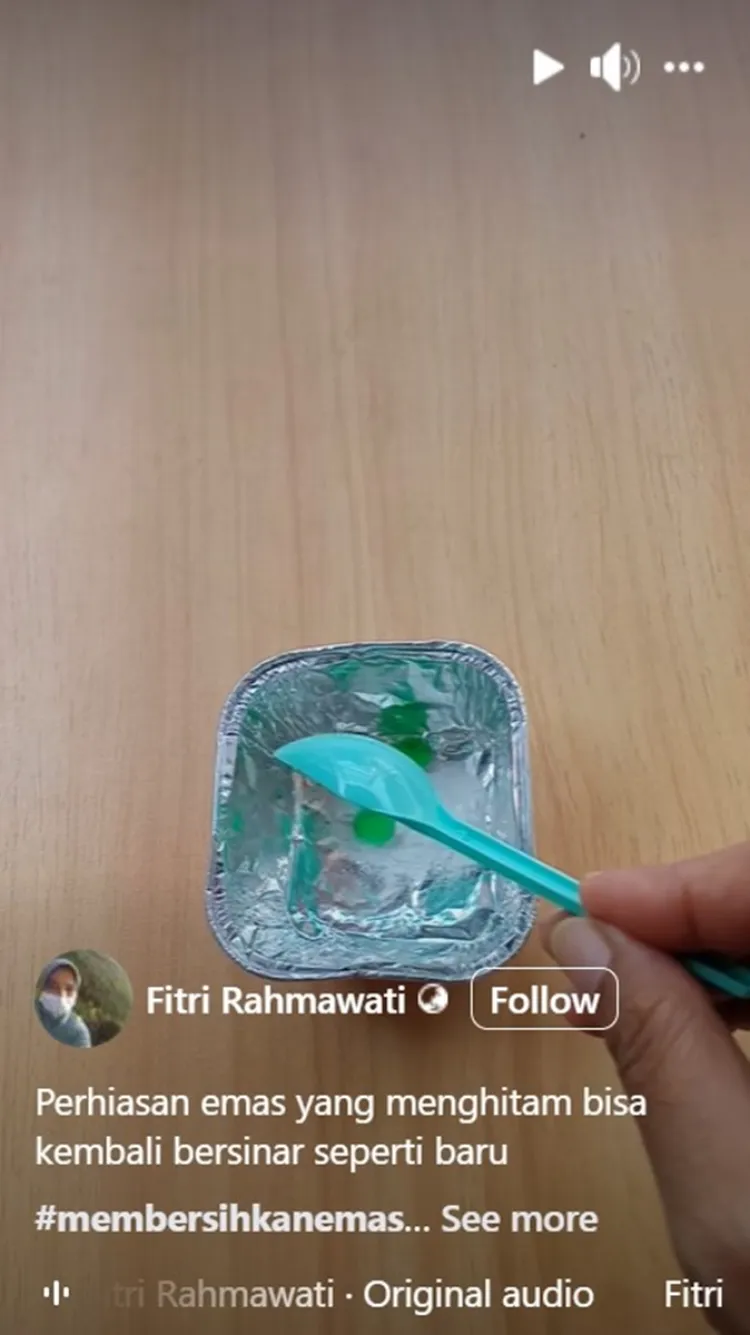 Seorang pengguna Facebook bernama Fitri Rahmawati pernah membagikan trik membersihkan perhiasan emas menghitam hanya dengan bahan dapur. Dilansir BrilioFood pada Jumat (23/8), bahan dapur yang digunakan adalah baking soda dan sabun cuci piring. Kedua bahan ini bisa ampuh menghilangkan kotoran yang ada di perhiasan emas, lho.