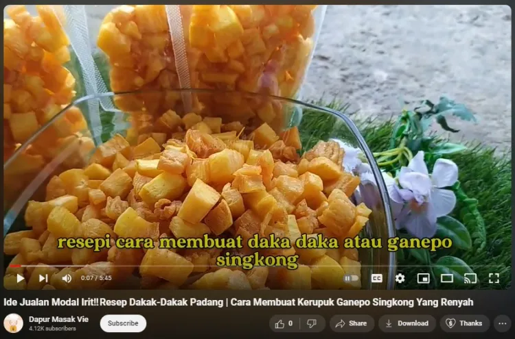 Goreng sampai minyaknya tak lagi berbusa dan kerupuk ganepo kecokelatan. Setelah itu, angkat dan tiriskan kerupuk ganepo sebelum disajikan. Pemilik akun YouTube Dapur Masak Vie mengatakan, hidangan ini juga bisa kamu jadikan ide bisnis dengan kemasan plastik kedap udara.