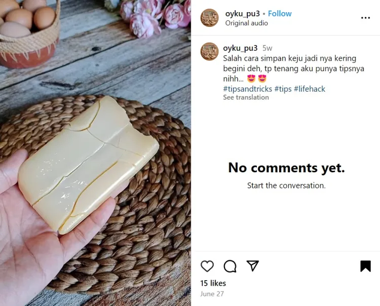 Seorang pengguna Instagram @oyku_pu3 pernah membagikan trik sederhana melunakkan keju yang telanjur kering. Hal ini diungkapkan melalui salah satu video yang diunggah. Dia mengaku hanya membutuhkan satu jenis minuman untuk melunakkan keju tanpa mengubah rasa aslinya.