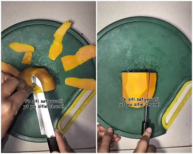 - Cara wanita kupas mangga nggak pakai pisau ini sulit ditiru, skillnya di luar nalar
