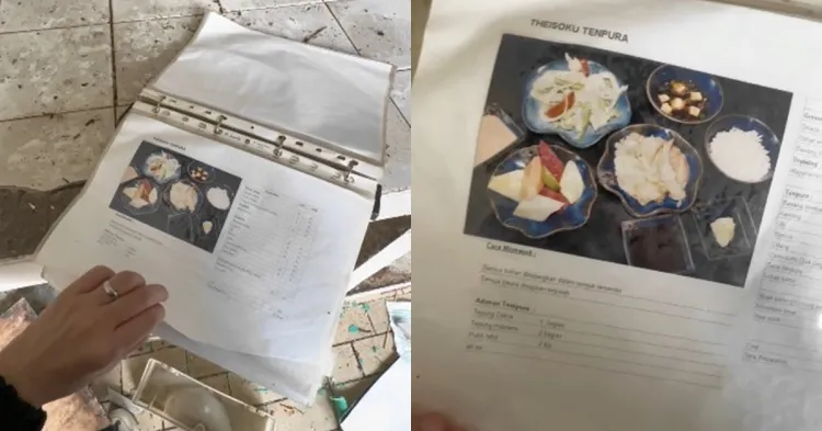 "Nggak sengaja aku lihat salah satu buku yang tergeletak, pas dibuka ternyata isinya adalah bahan-bahan menu makanan yang dulunya menjadi menu makanan di sini. Ini sebenarnya makanan pada umumnya sih, kebanyakan makanan western," kata Chindy, dikutip BrilioFood dari TikTok @jelajahkuy_ pada Senin (8/7).