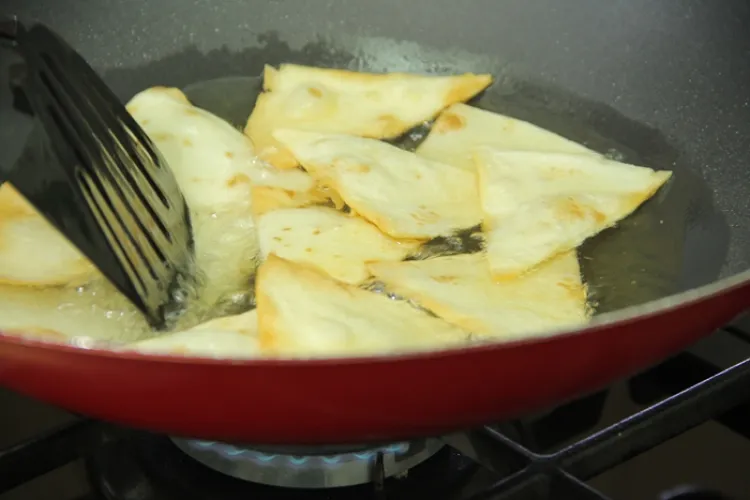 2. Goreng ke dalam minyak panas hingga warna kecoklatan, angkat, lalu tiriskan.