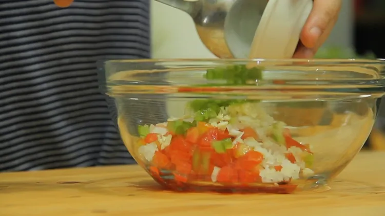 Campurkan semua bahan ke dalam mangkuk, aduk rata dan diamkan selama 15 menit agar bumbunya meresap merata.